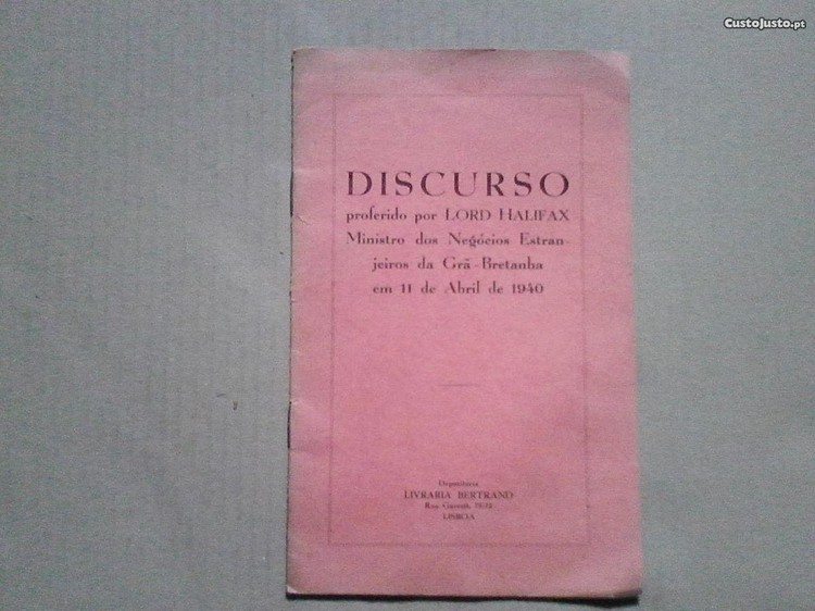 Preço: 5 €Discurso proferido por Lord Halifax
