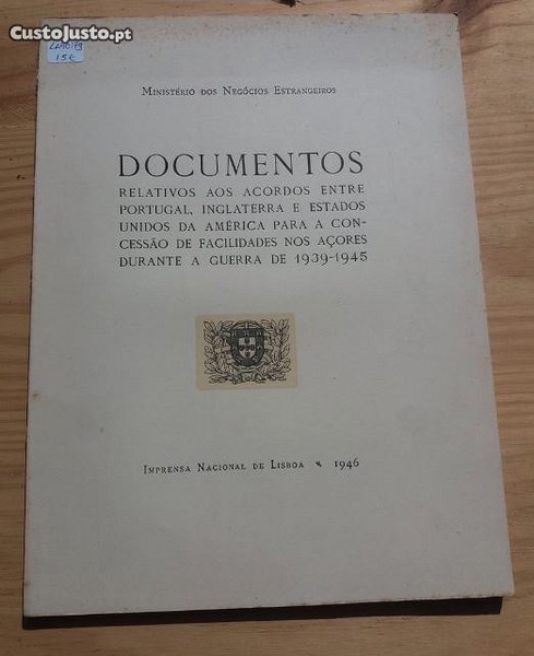 Preço: 15 €Documentos Relativos aos acordos entre Portugal, Inglaterra e Estados Unidos da América para a concessão de facilidades no Açore