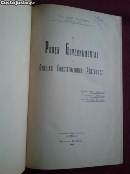 Preço: 20 €Dr. José Tavares-O Poder Governamental no Direito Constitucional-1909