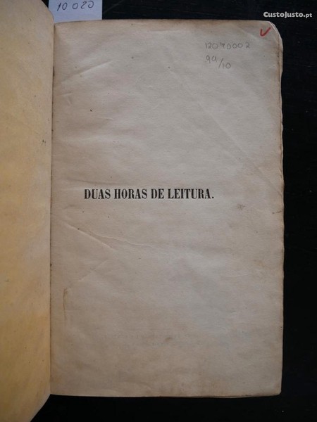 N 10020 Duas Horas de Leitura. Camillo Castello Branco. Typographia da Revista. 174 Páginas. Encadernado a pele. Falta a folha de rosto. 19,5x13cm. Alguns escritos nas folhas de anterrosto e da contra capa.