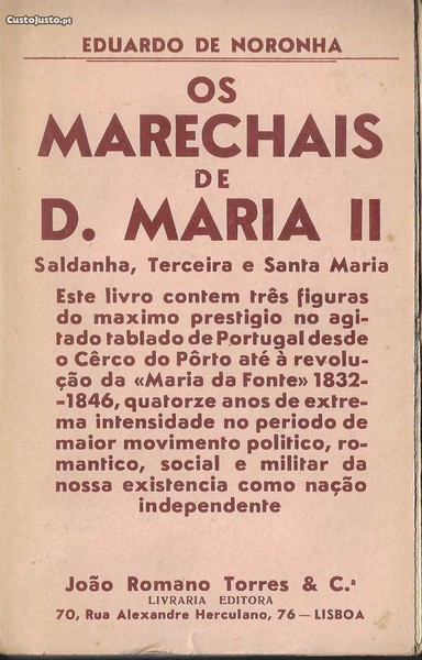 Preço: 14 €Eduardo de Noronha. Os Marechais de D. Maria II.