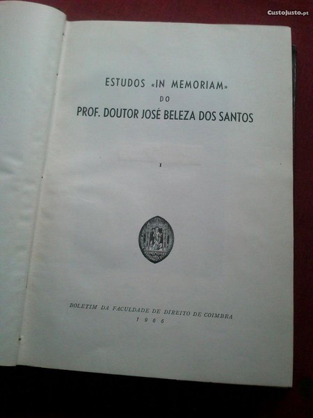 Estudos «In Memoriam» do Prof. Doutor José Beleza dos Santos-I-Boletim da Faculdade de Direito de Coimbra-1966
