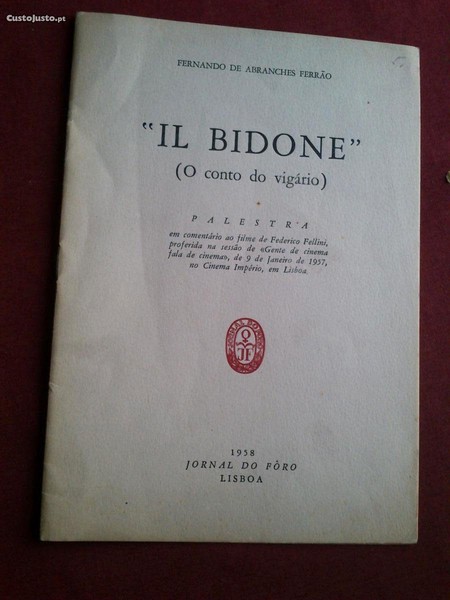 Fernando de Abranches Ferrão-"Il Bidone" (O Conto do Vigário)-Palestra Em Comentário ao Filme de Federico Fellini,Proferida na Sessão de «Gente de Cinema Fala de Cinema»,de 9 de Janeiro de 1957,no Cinema Império,em Lisboa-Jornal do Fôro-Lisboa-1958