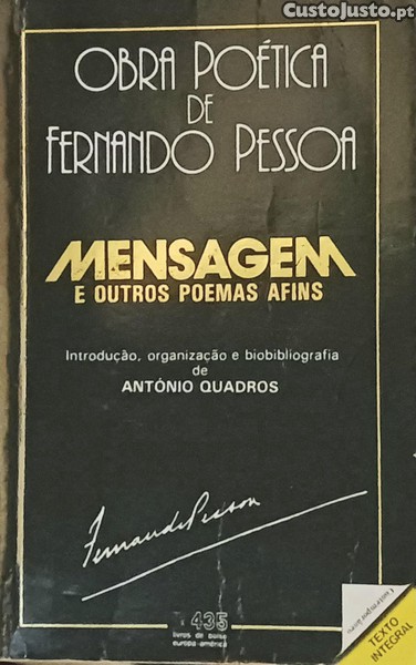 Fernando Pessoa. Mensagem e outros poemas afins. Introdução, organização e bibliografia de António Quadros. Col. livros de bolso, 435, 2ª ed., Publicações Europa-América, s.d., 193 p.