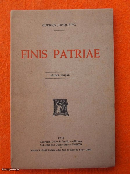 Livro de Guerra Junqueiro - Finis Patriae . Editora: Lello & Irmão - Editores de 1945 com 50 páginas de capa mole . Livro em muito bom estado . Inclui portes em correio editorial .