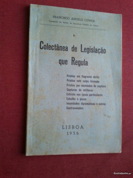 Francisco Ângelo Cunha-Colectânea de Legislação Que Regula:Prisões Em Flagrante Delito;Prisões Sem Culpa Formada;Prisões Por Mandados De Captura;Capturas De Militares;Entrada Nas Casas Particulares;Esbulho e Posse;Imunidades Diplomáticas e Outras;Contravenções-Lisboa-1936