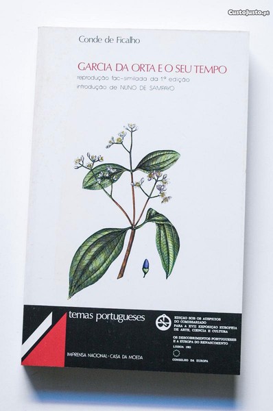 Existe um « tempo perfeito para cada reedição. No que se refere a Garcia da Orta e o seu Tempo, o estudo biográfico e histórico do conde de Ficalho sobre o grande investigador quinhentista, esse tempo perfeito é o ano de 1983, com a realização em Lisboa da XVII Exposição Europeia de Arte, Ciência e Cultura, Os Descobrimentos Portugueses e a Europa do Renascimento. E também existe um « editor ideal neste caso, a INCM. Imprensa Nacional, Casa da Moeda, Foi, com efeito, há 97 ans, em 1886, que o conde de Ficalho entregou a este mesmo Prelo, então apenas Imprensa Nacional, Garcia da Orta e o seu Tempo, que agora se reedita fac-similado. Na fronteira de um centenário, a perfazer em 1986, coincidindo com a exposição « Os Descobrimentos Portugueses e a Europa do Renascimento , é dada ao leitor português a oportunidade de conhecer ( de reconhecer ) o insigne cientista do Colóquio das Drogas e dos Simples. Garcia da Orta e o seu Tempo, inicialmente concebido como introdução do Colóquio, além do retrato exemplar do ilustre naturalista, é uma história objetiva do domínio português na Índia, nomeadamente em Goa, onde o encontro de duas culturas, a ocidental e a oriental, a portuguesa e a indostânica, produziu um sincretismo e que durou quatro séculos e teve faces admiráveis. Outro motivo que aconselhava a reimpressão no ano da XVII Exposição Europeia de Arte, Ciência e Cultura, Os Descobrimentos Portugueses e a Europa do Renascimento.