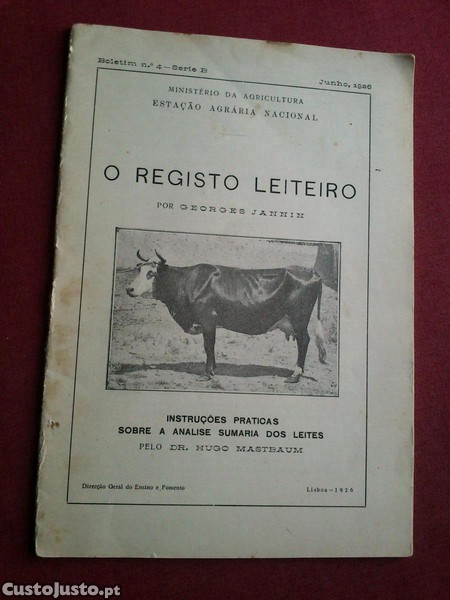Ministério da Agricultura-Estação Agrária Nacional-Boletim N.º 4:Série B,Junho ,1926-O Registo Leiteiro por Georges Jannin-Instruções Práticas Sobre a Análise Sumária dos Leites Pelo Dr. Hugo Mastbaum-Direcção Geral do Ensino e Fomento-Lisboa-1926