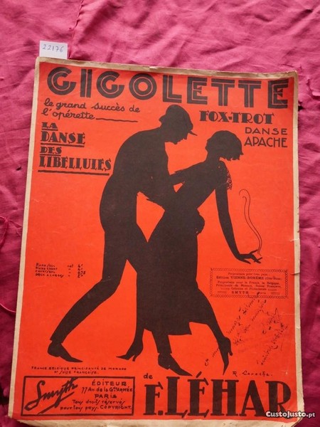 N 22176 Gigolette Fox Trot. De lOpérette Danse des Libellules Musique de F. Lehàr 4 Pgs. Sinais de uso.