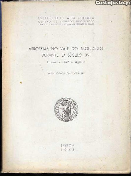 Gil Maria Olimpia da Rocha. Arroteias no vale do Mondego durante o século XVI. Ensaio de História Agrária. Instituto de Alta Cultura, 1965, 147 p. + 1 desdobrável.