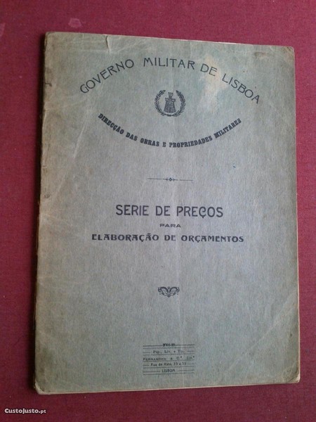 Governo Militar de Lisboa-Direcção das Obras e Propriedades Militares-Série de Preços Para Elaboração de Orçamentos-Lisboa-1929