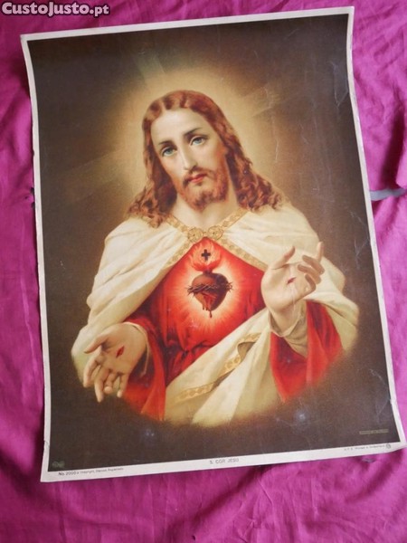 Preço: 20 €Gravura antiga do Sagrado Coração de Jesus. K. F. Z. Printed in Switzerland.
