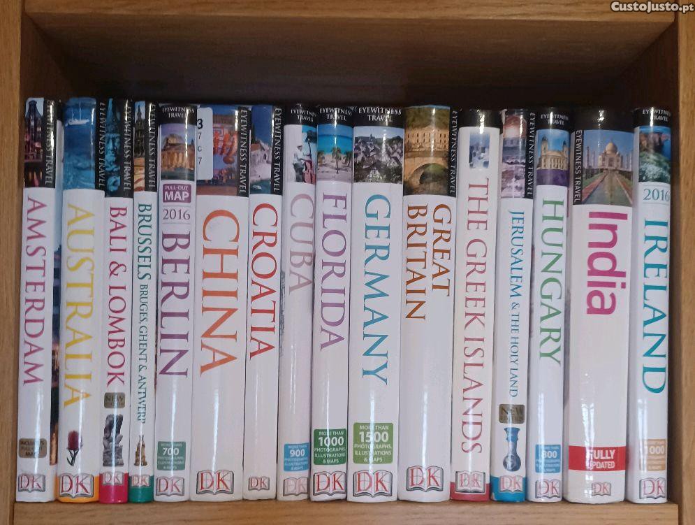 Vendo guias "American Express" / DK em inglês ("Eyewitness") de destinos como Alemanha, Amesterdão, África do Sul, Austrália, Bali e Lombok, Berlim, Bruxelas, Bruges, Gand e Antuérpia, China, Croácia, Cuba, Escócia, Egipto, Florida, Grã-Bretanha, Hungria, Ilhas Gregas, Índia, Irlanda, Japão (20 eur), Jerusalém e Terra Santa, Malásia e Singapura, Marrocos, Nápoles e a Costa de Amalfi, Nova Zelândia, Suécia, entre outros.