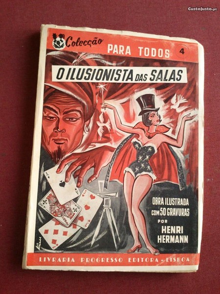 Colecção Para Todos N.º 4-O Ilusionista das Salas:Ligeireza e Escamoteação (Sortes de Cartas e Outras,Sem o Emprego de Aparelhos,Subtilezas Engenhosas e Recreativas-Obra Ilustrada Com 50 Gravuras) por Henri Hermann-2.ª Edição,Aumentada e Melhorada-Edição da Livraria Progresso Editora-Lisboa-s/d