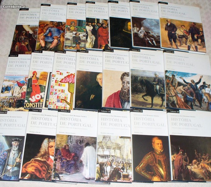 Vol. 1 - A Formação do Território Da Lusitânia ao alargamento do País, por Ângelo Ribeiro. Vol. 2 - A Afirmação do País Da Conquista do Algarve à Regência de Leonor Teles. Ângelo Ribeiro. Vol. 3 - A Epopeia dos Descobrimentos A Dinastia de Avise e a Expansão Ultramarina, por Newton de Macedo. Vol. 4 - Glória e Declínio do Império De D. Manuel I ao Domínio dos Filipes, por Newton de Macedo. Vol. 5 - A Restauração da Independência O início da Dinastia de Bragança, por Ângelo Ribeiro. Vol. 6 - A Monarquia Da Afirmação do Poder às Invasões Francesas, por Ângelo Ribeiro e Hernâni Cidade. Vol. 7 - Implantação do Regime Liberal Da Revolução de 1820 à Queda da Monarquia, por Hernâni Cidade. Vol. 8 - A Primeira República Do 5 de Outubro à Crise Partidária, por José Hermano Saraiva. Vol. 9 - A Segunda República De António Salazar ao Marcelismo, por José Hermano Saraiva. Vol- 10 - A Terceira República Do 25 de Abril aos Nossos Dias, por José Hermano Saraiva.