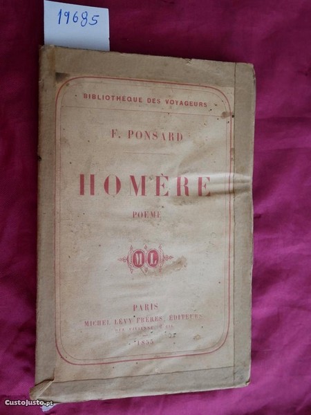 N 19685 Homére. Poême por F. Ponsard. Troisiéme Édition, Paris Michel Levy Frères Éditeurs 1855. 89 Pgs, 10x16cm. Capa reforçada. MUITO RARO.