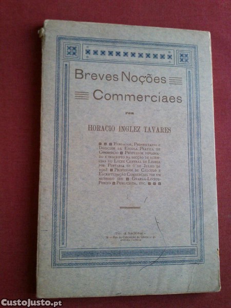 Breves Noções Commerciais por Horácio Inglez Tavares-2.ª Edição-Typographia «A Nacional»-Lisboa-1911