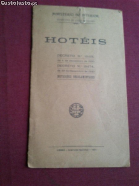 Ministério do Interior (Repartição de Jogos e Turismo)-Hotéis-Decreto N.º 19.101 de 4 de Dezembro de 1930 e Decreto N.º 19.174 de 22 de Dezembro de 1930:Instruções Regulamentares-Imprensa Nacional-Lisboa-1931