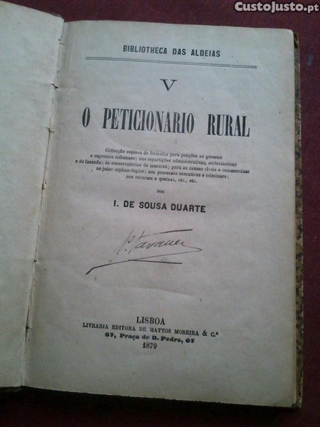 Bibliotheca das Aldeias-V-O Peticionário Rural (Collecção Copiosa de Fórmulas Para Petições ao Governo e Supremos Tribunnaes;Nas Repartições Administrativas,Ecclesiásticas e de Fazenda;Às Conservatórias de Comarca;Para as Causas Cíveis e Commerciais no Juízo Orphanológico;Nos Processos Executivos e Criminais;Nos Recursos e Queixas,Etc,Etc) por I. (Innocêncio) de Sousa Duarte-Lisboa-Livraria Editora de Mattos Moreira & C.ª-1879