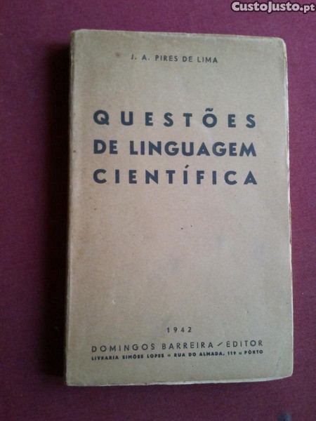 J.A. Pires de Lima-Questões de Linguagem Científica-Domingos Barreira,Editor-Porto-1942