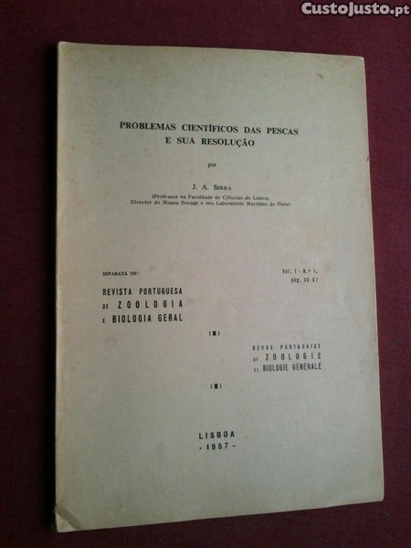 Problemas Científicos das Pescas e Sua Resolução por J.A. Serra (Professor na Faculdade de Ciências de Lisboa,Director do Museu Bocage e Seu Laboratório Marítimo da Guia)-Lisboa-1957