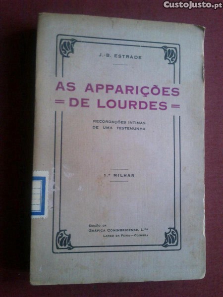 As Apparições de Lourdes (Recordações Íntimas de Uma Testemunha) por J.-B. Estrade-Versão Portuguesa de Manuel Ferreira Matheus-Gráfica Conimbricense,Lda Editora-Coimbra-1926