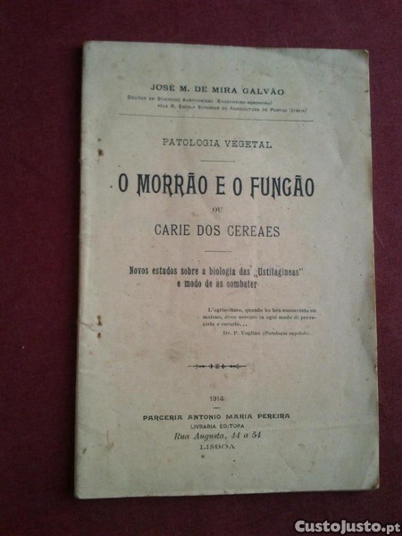 J. Mira Galvão-Patologia Vegetal:O Morrão e o Fungão Ou Cárie dos Cereaes (Novos Estudos Sobre a Biologia das "Ustilagineas" e Modo de As Combater-Parceria António Maria Pereira-Lisboa-1914