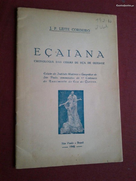 J.P. Leite Cordeiro-Eçaiana (Cronologia das Obras de Eça de Queiroz) Edição do Insttituto Histórico e Geográfico de São Paulo,Comemorativa do 1.º Centenário do Nascimento de Eça de Queiroz-São Paulo,Brasil-1945