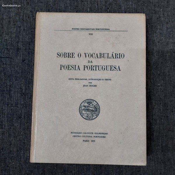 Fontes Documentais Portuguesas-VIII-Sobre O Vocabulário Da Poesia Portuguesa-Nota Preliminar,Introdução e Texto por Jean Roche-Fundação Calouste Gulbenkian/Centro Cultural Português-Paris-1975