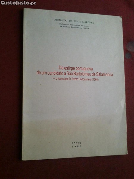 Armando de Jesus Marques (Professor da Universidade dos Açores / Da Academia Portuguesa da História)-Da Estirpe Portuguesa de Um Candidato a São Bartolomeu de Salamanca:O Licenciado D. Pedro Portocarrero (1564)-Porto-1986