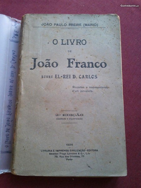 João Paulo Freire (Mário)-O Livro de João Franco Sobre El-Rei D. Carlos (Recortes e Comentários d'Um Jornalista)-2.ª Edição Correcta e Augmentada-Livraria e Imprensa Civilização,Editora-Porto-1925