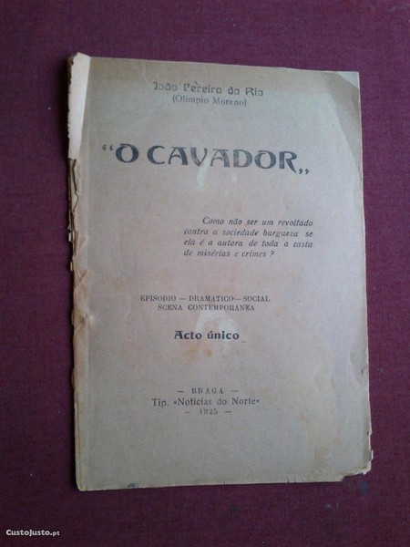 João Pereira do Rio (Olímpio Moreno)-O Cavador (Episódio Dramático-Social Scena Contemporânea)-Acto Único-Tip. «Notícias do Norte»-Braga-1925