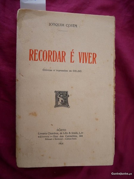 Preço: 11 €Joaquim Costa. Recordar é Viver. 1924