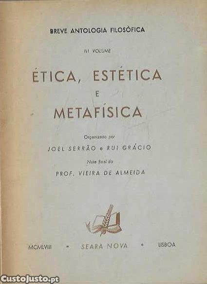 Joel Serrão e Rui Grácio (Org.). Ética, Estética e Metafísica. Nota final de Vieira de Almeida. III volume. Seara Nova. 1958, 399 p.