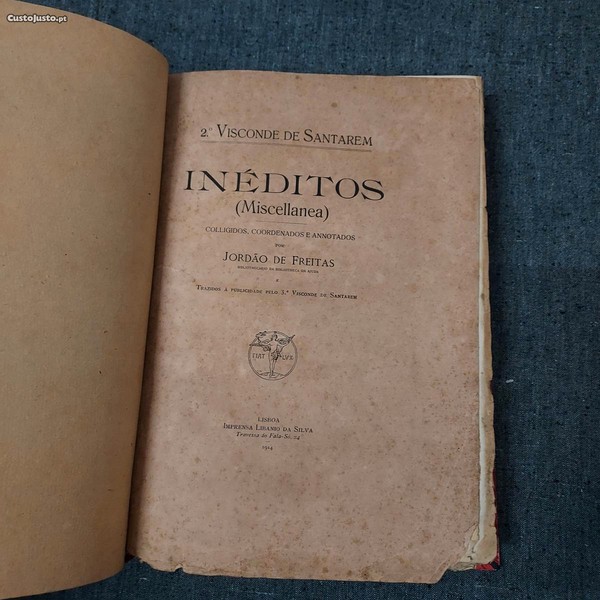 2.º Visconde De Santarém-Inéditos (Miscellanea)-Colligidos,Coordenados e Annotados por Jordão De Freitas (Bibliothecário Da Bibliotheca Da Ajuda) e Trazidos à Publicidade Pelo 3.º Visconde De Santarém-Imprensa Libânio Da Silva-Lisboa-1914