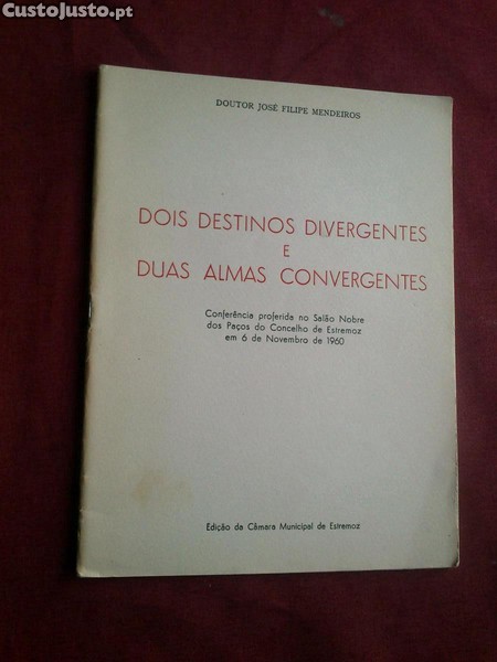 Doutor José Filipe Mendeiros-Dois Destinos Divergentes e Duas Almas Convergentes-Conferência Proferida no Salão Nobre dos Paços do Concelho de Estremoz Em 6 de Novembro de 1960-Edição da Câmara Municipal de Estremoz