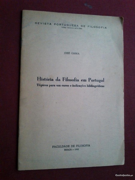 Revista Portuguesa de Filosofia (Tomo XXXVIII-1-2/3-1982)-José Gama-História da Filosofia em Portugal (Tópicos Para Um Curso e Indicações Bibliográficas)-Faculdade de Filosofia-Braga-1982