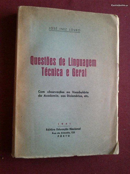 José Inez Louro-Questões de Linguagem Técnica e Geral (Com Observações ao Vocabulário da Academia,Aos Dicionários,etc)-Editora Educação Nacional-Porto-1941