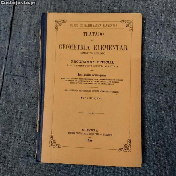 Curso de Mathematica Elementar.Tratado de Geometria Elementar Composto Segundo o Programa Official Para o Ensino D'Esta Sciencia Nos Lyceus por José Adelino Serrasqueiro-Coimbra-Livraria Central de J. Diogo Pires-1926