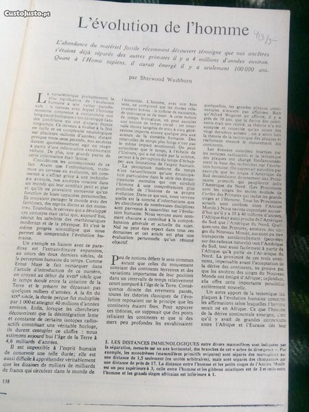 L'évolution de l'homme - Sherwood Washburn - Fotocópias encadernadas. Em francês. São 322 páginas.