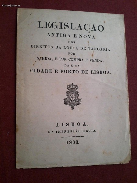 Legislação Antiga e Nova dos Direitos da Louça de Tanoaria por Sahida,e por Compra e Venda da e na Cidade e Porto de Lisboa-Lisboa,na Impressão Régia-1833