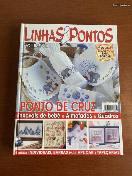 Vendo livro Linhas & Pontos - Ponto de Cruz Vol. VIII com capa dura de Enxovais de bebé, Almofadas, Quadros com mais de 350 esquemas para bordar.