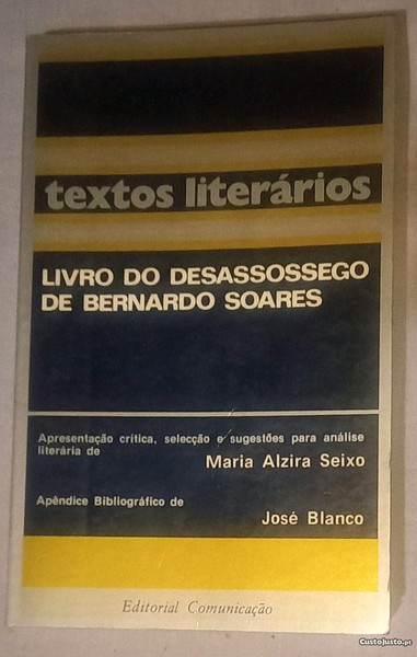 -Livro do Desassossego de Bernardo Soares, com apresentação crítica, selecção e sugestões para análise literária de Maria Alzira Seixo, apêndice bibliográfico de José Blanco.