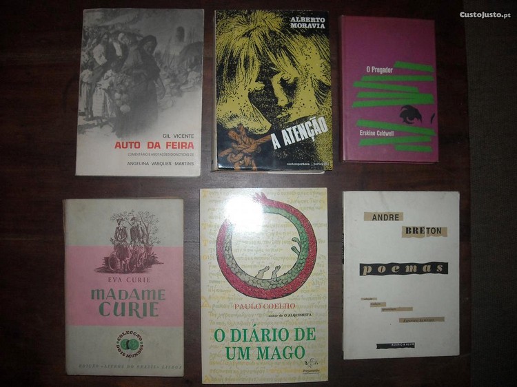 Livros diversos Caldwell, Breton, Gil Vicente, Moravia, Curie, Coelho