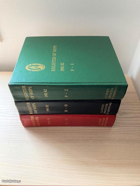 Vendo livros da Lloyd's Register Of Shipping antigos - 3 volumes de capa rija com registo de navios dos anos 80 por orgem alfabética.