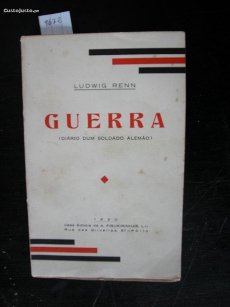 Preço: 18 €Ludwing Renn. Guerra. (Diário dum Soldado Alemão).