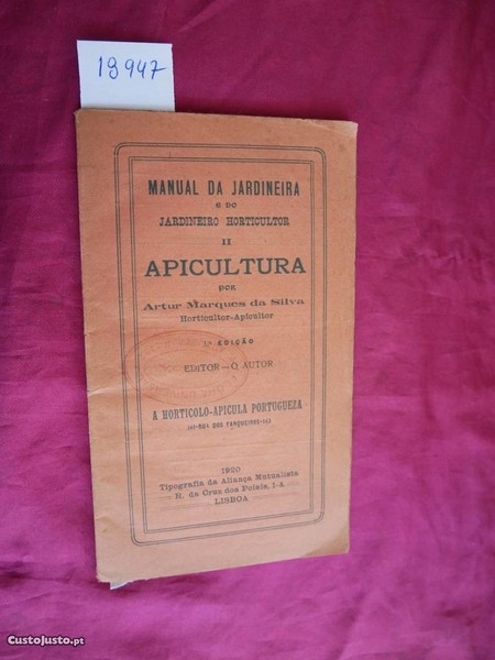 N 18947 Manual de Jardineira e do Jardineiro Horticultor. II APICULTURA. Por Artur Marques da Silva. Horticultor-Apicultor. 1 Edição, Edição de Autor. 1920 Tipografia da Aliança Mutualista Lisboa. 80 Pgs. MUITO RARO.