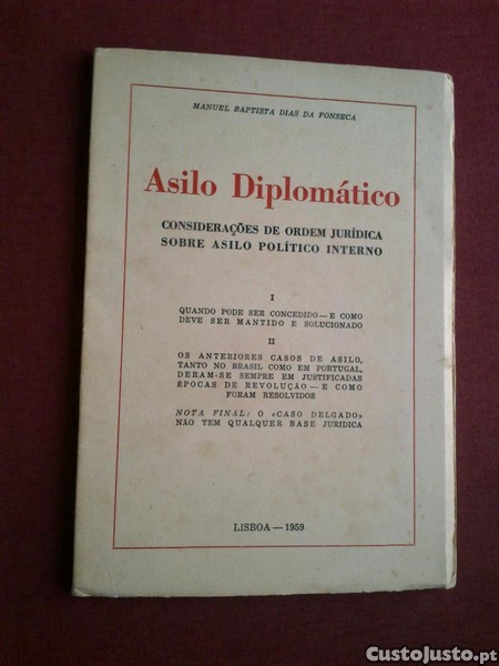 Manuel Baptista Dias da Fonseca-Asilo Diplomático,Considerações de Ordem Jurídica Sobre Asilo Político Interno-Lisboa-1959
