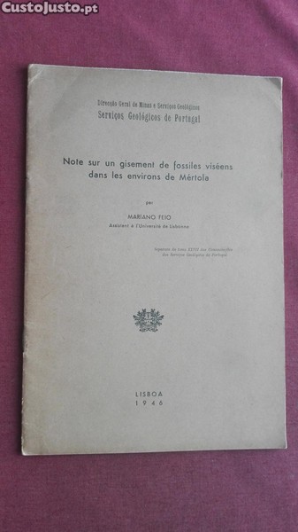Preço: 5 €Mariano Feio-Note Sur un Gisement de Fossiles Dans les Environs de Mértola-1946