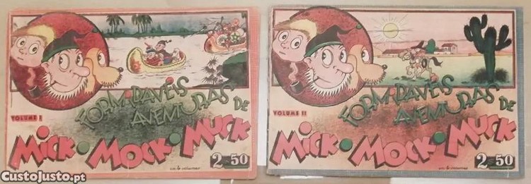 Mick, Mock & Muck 1 e 2 - Arturo Moreno - albuns edição Mosquito - ano publicação 1947- formato rectangular 21,5 X 14,5 cm, 32 págs a cores cada - capa mole